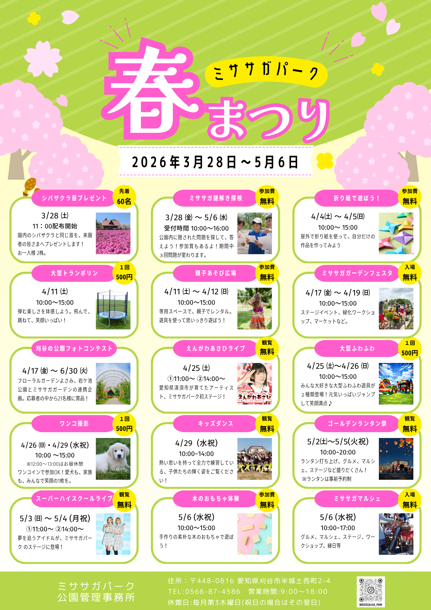 みなさんの春の思い出にミササガパークでの出来事が刻まれたら嬉しいなぁと思って、土日祝はイベントを開催します!