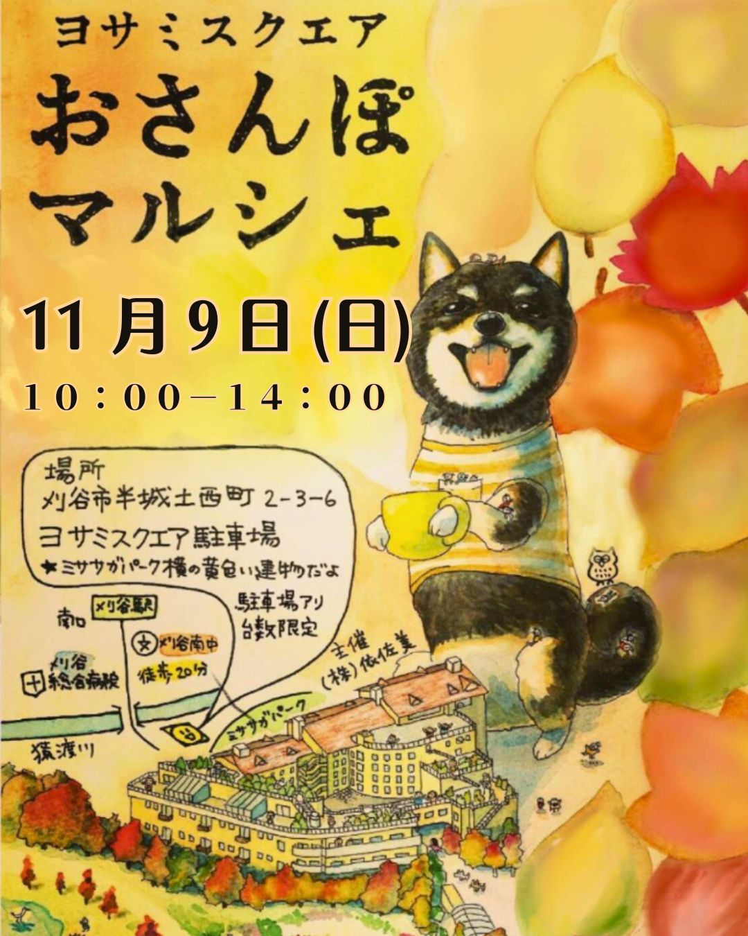 | 備考 | 公園の隣の黄色い建物の「ヨサミスクエア」では、10:00〜14:00までおさんぽマルシェを開催♪ |